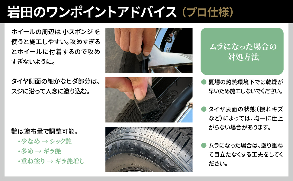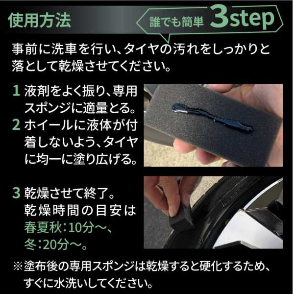 事前に洗車を行い、タイヤの汚れをしっかりと落として乾燥させてください